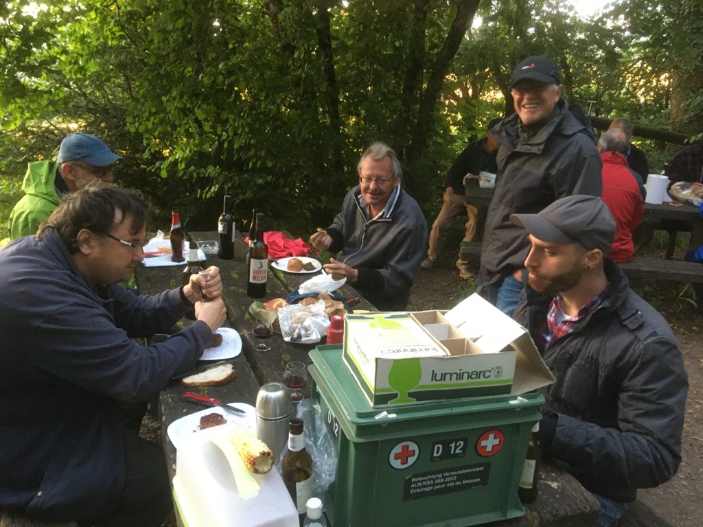 Jeder nimmt sein Essen und Trinken und was er sonst noch braucht selber mit.